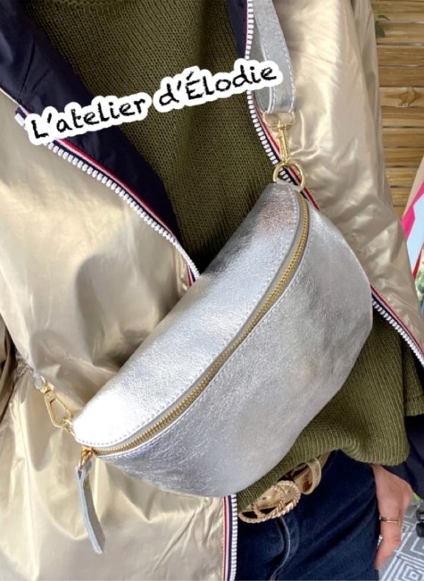 La banane cuir irisé - silver argenté