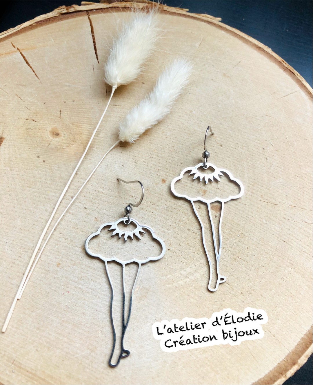 Boucles d'oreilles faites à la main, fines et légères à porter.