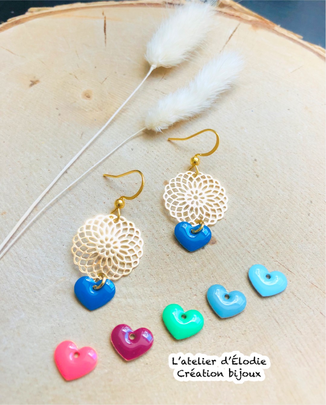 rosace dorée et cœurs émaillés double face