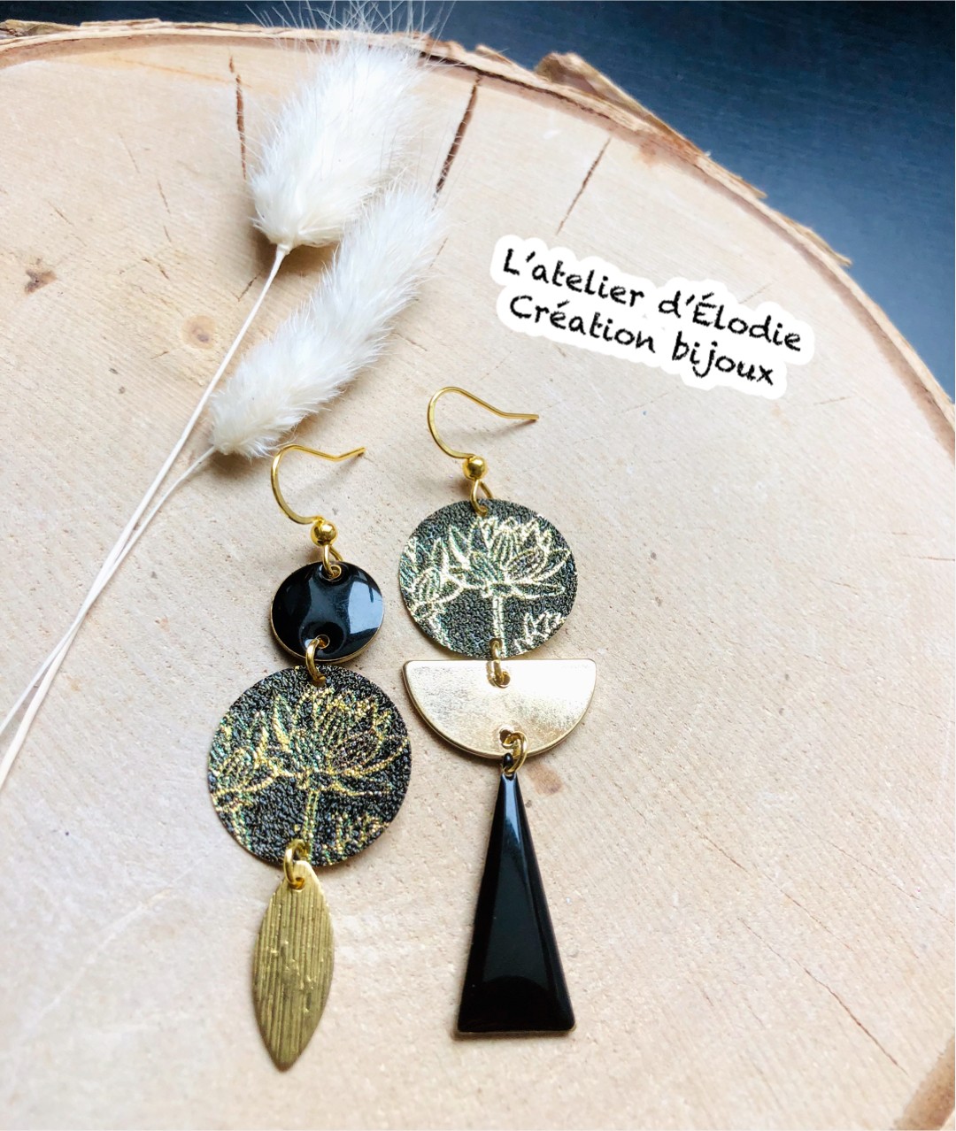 pièce unique - breloques dorées et émaillées noires