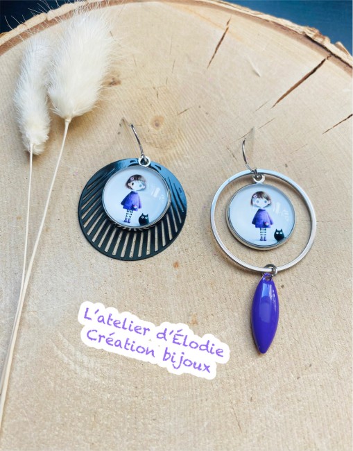 La demoiselle & son chat 🐈‍⬛ ton violet