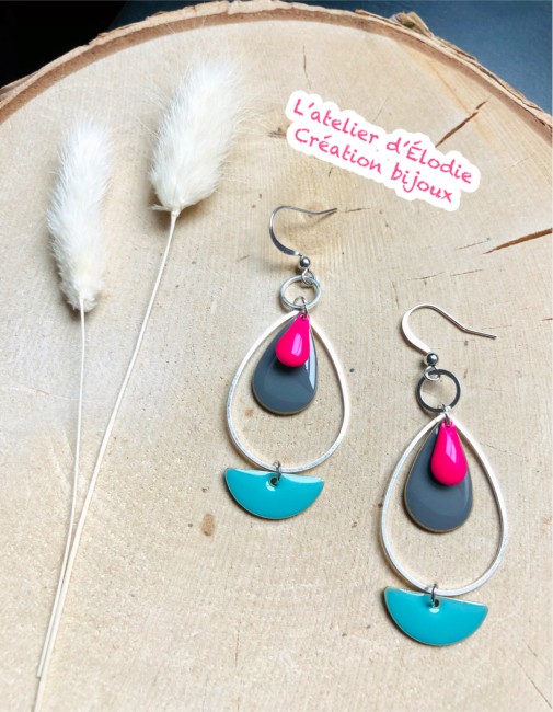 Les gouttes multicolores - rose fuschia gris turquoise